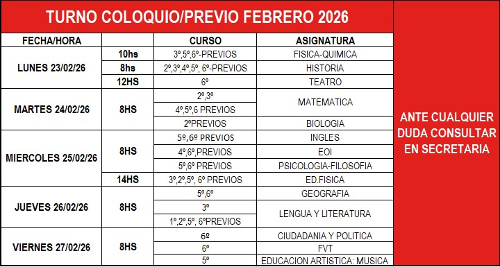 TURNOS DE EXÁMENES COLOQUIO/PREVIO FEBRERO 2026